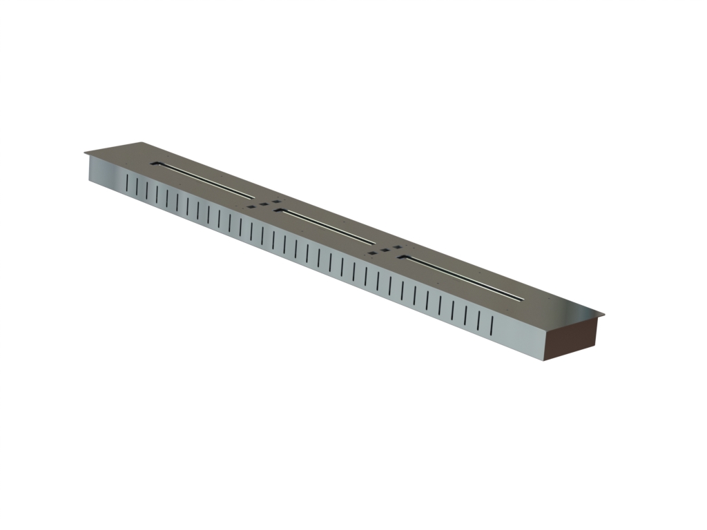 Топливный блок изготовлен из нержавеющей шлифованой стали толщиной 2мм. В одном топливном блоке объеденены три горелки с длиной линии огня 380мм. Топливный блок снабжен специальной ёмкостью для ароматических масел.