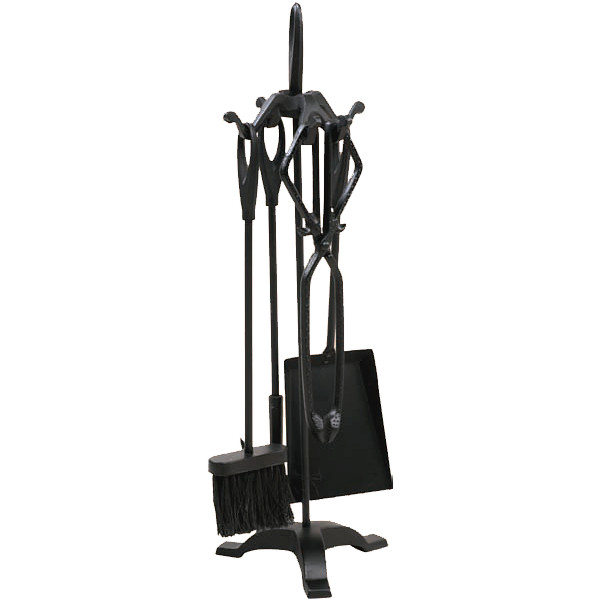 Прекрасный каминный набор станет дополнением к домашнему очагу, хорошо вписывается в интерьер дома или квартиры и добавит особый шик и уют. В данном наборе 5 предметов: Стойка для инструментов, кочерга, щипцы, веник, совок. Выполнен в чёрном цвете.
