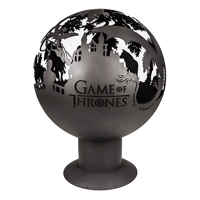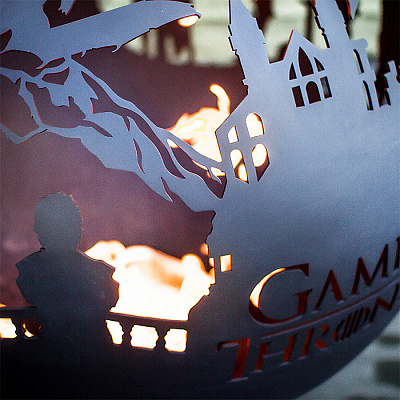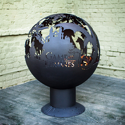 Уличный очаг Игра престолов (Game of Thrones) Firecup как нельзя лучше подойдет для истинных поклонников всемирно известного сериала. Конструкция выполнена в виде иллюстраций по мотивам сериала. Очаг сделан руками профессионального мастера и отлично вписывается в любое окружение, привлекая к себе внимание.