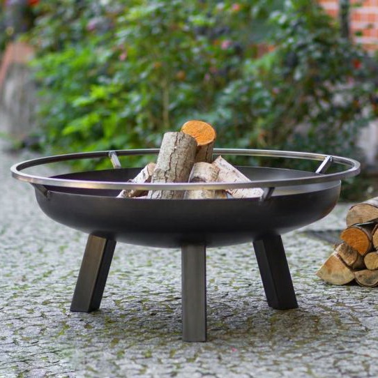 Очень удобный и красивый очаг для костра, объединяющий дровницу и костровую чашу.