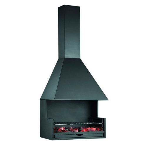 Барбекю, выполненный из листовой нержавеющей стали черного цвета, зольник, с решеткой, решетка для гриля с направляющими встроена в нижнюю часть топки. Диаметр дымохода 200 мм.