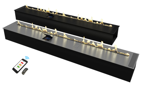 Автоматический биокамин Zefire Automatic 1800 является настоящим прорывом в современном производстве. Благодаря специальной технологии управлять прибором можно при помощи смартфона, планшета или другого гаджета. При этом такое устройство совершено безопасно в использовании, не выделяя запаха, гари и дыма. В случае возникновения любых аварийных ситуаций камин отключается автоматически. Что касается его охлаждения, то за это отвечают встроенные кулеры. Линия огня: 1600 мм.