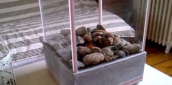 Как сделать биокамин своими руками? Очаг живого безопасного огня в доме или квартире – это изюминка интерьера, даже если речь идет о небольшом пламени. Изначально биокамины разрабатывались, как средство декора помещений, но их функционал намного обширнее. Живой огонь успокаивает, снимает стресс и усталость, помогает сконцентрироваться, наделяет комнату теплом, светом и уютом. Готовые модели для многих – это непозволительная роскошь, поэтому домашние мастера хотят знать, как самому сделать биокамин. На этот вопрос и будет дан ответ в нашей статье. Что потребуется? На самом деле, в этом нет ничего сложного, но подходить к созданию изделия нужно с фантазией. Для этого не потребуются какие-то фантастические инструменты и материалы, ведь все необходимое можно найти в запасах бережливого хозяина. Разумеется, все зависит формы, размеров и дизайна изделия. Чтобы сделать биокамин нам понадобятся данные материалы. Тонкое стекло (оконное или для фоторамок). Стеклорез. Герметик. Короб из металла с открытым верхом. Биотопливо. Металлический стакан или банка. Металлическая сетка. Фитиль. Галька или другие виды камня. Декоративные элементы. Ножницы, ножовка по металлу или болгарка. Этого вполне достаточно, чтобы создать привлекательный биокамин средних размеров, показать который будет не стыдно гостям. Учитывая размеры, можно отнести конструкцию к напольным моделям. Как сделать биокамин в домашних условиях? Напольный биокамин своими руками: пошаговая инструкция с фото. Рис. 1 Самодельный биокамин Измерить размеры металлического ящика, который выступит в качестве основания, и вырезать стенки из стекла соответствующей длины. Соединить вырезанные стеклянные листы при помощи силиконового герметика. Оставить конструкцию на сутки подсыхать, подперев стекла любыми предметами, дабы избежать деформации. После этого, аккуратно срезаем выступивший герметик. Установить стеклянную раму на металлический короб. Поставить металлическую банку или стакан, наполненную биотопливом, в центр металлического ящика. Из металлической сетки вырезать 2 рамки, которые устанавливаем на металлическую банку. Пропустить сквозь решетку фитиль. Поверхность сетки покрыть камнями или керамическими элементами. Все! Вы смогли изготовить самодельный биокамин, и им можно начать пользоваться. Рис. 2 Самодельный биокамин с камнем Как видите, ничего сложного в этом нет. Если вы хотите сделать более оригинальное изделие, то продумайте форму и дизайн, но и обычный прямоугольный или квадратный биокамин в комнате будет выглядеть превосходно. Биокамины для квартиры своими руками: несколько советов. Мощности одной горелки достаточно для 16-20 кв. м жилплощади – в противном случае она быстро заполнится углекислым газом, образующимся при любом горении. Если вы хотите создать биокамины своими руками, размеры, чертежи которых разработали самостоятельно, то учтите еще один критерий: расстояние от центра (горелки) до стекла в идеале превышает 15 см. Чем ближе стекло к огню, тем выше вероятность, что оно лопнет от температуры. Не жалейте камней или керамических муляжей. Они нужны, чтобы украсить изделие, и для того, чтобы равномерно распределить тепло по поверхности. Это защищает стекло от трещин. Ни в коем случае не красьте поверхность металлического короба и внутреннюю часть констр