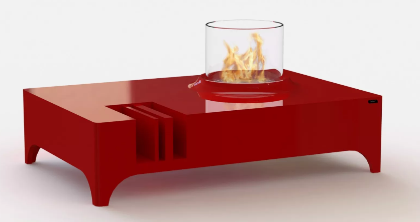 Дизайн напольного биокамина GlammFire Vulcanu вдохновлен внешним видом кратера вулкана. Разместив журналы и газеты в специально предназначенных для этого отделениях в облицовке камина, можно получить необходимые акценты.