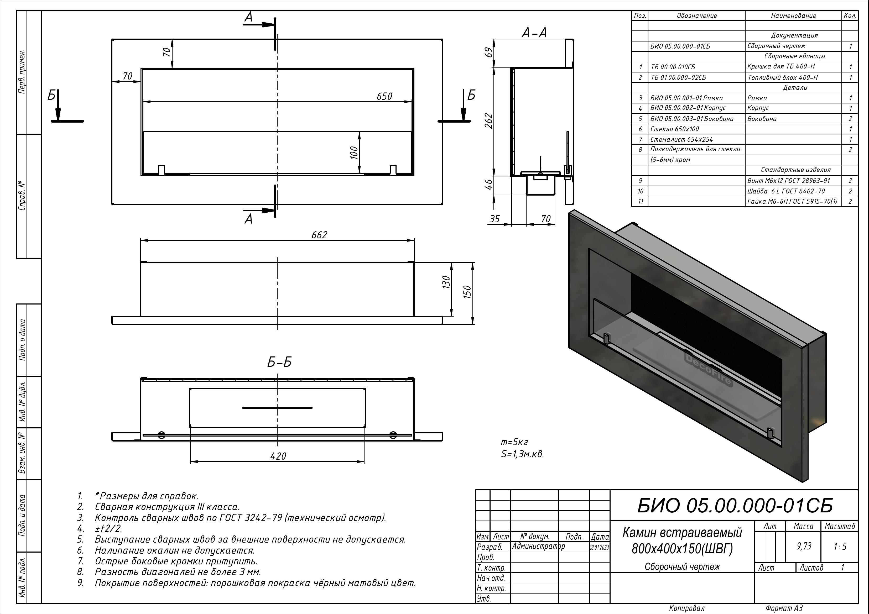 - Тип камина: Встраиваемый