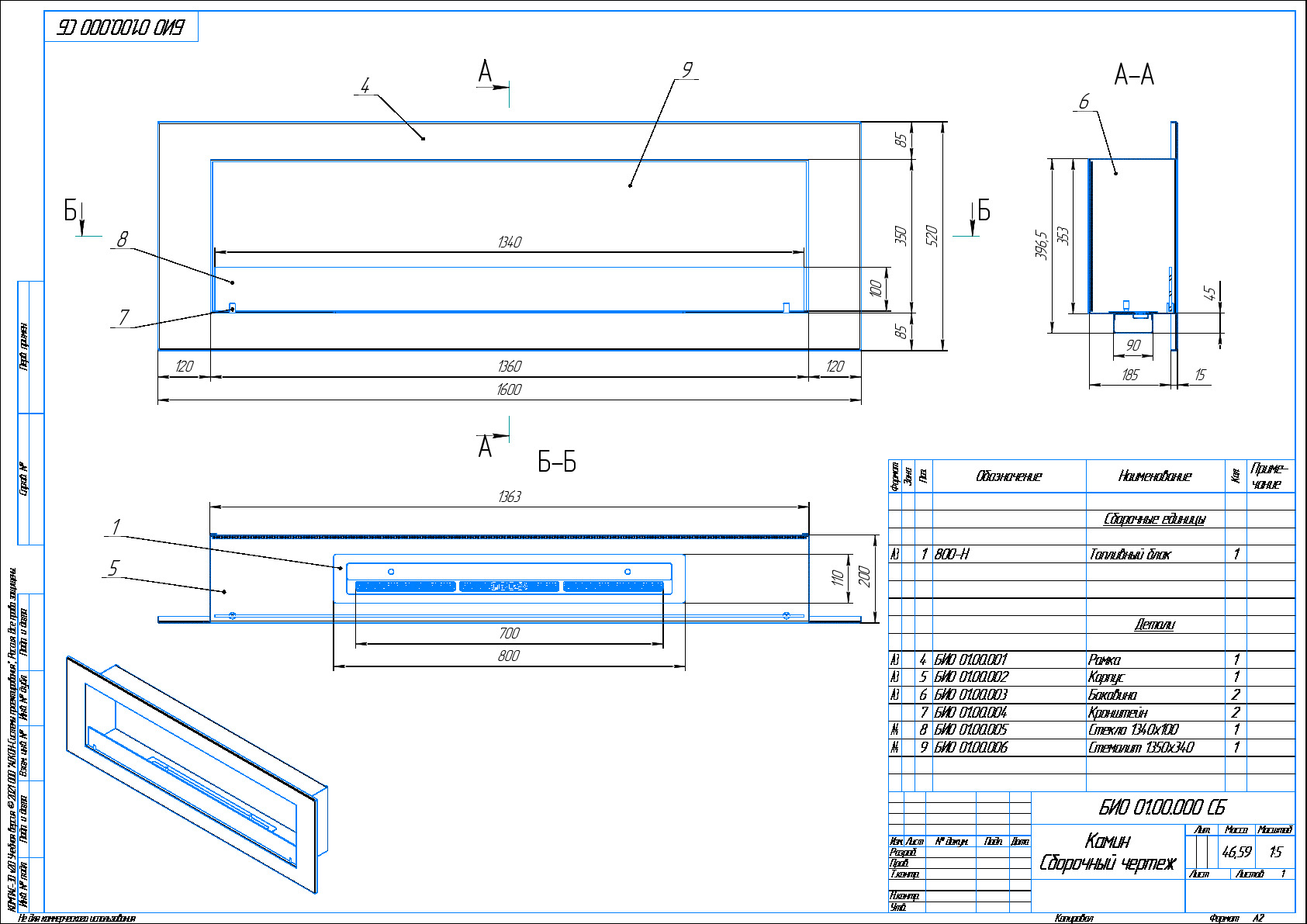 - Базовые размеры камина: 1600x200x520 мм