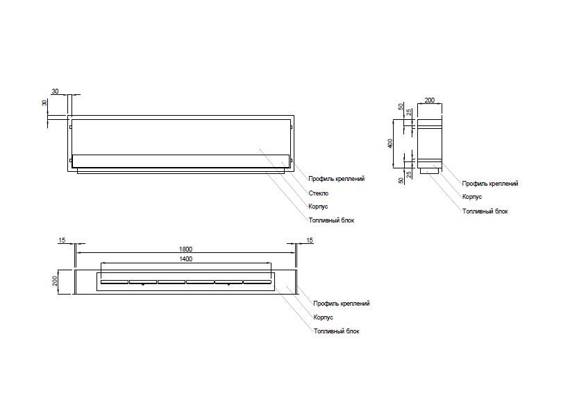 - Размеры топливного блока ШхГхВ, (мм) 1460х46х150