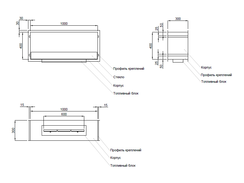 Встраиваемый биокамин Proff Fire Прометей-1000
