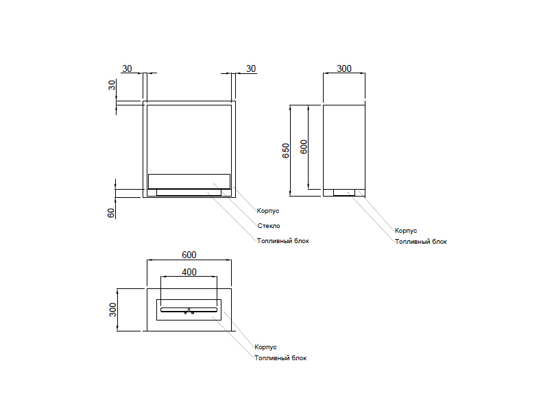 - Габаритные размеры ШxГxВ, (мм): 600x300x650