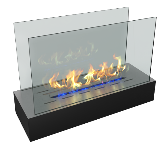 Модель имеет закаленные защитные стекла. Топка для биокамина изготовлена из нержавеющей шлифованной стали. Оригинальное сочетание стекла и металла сделают камин центром внимания. Линия огня длиной 600 мм создает равномерное пламя, интенсивность которого регулируется в мануальном режиме с помощью специальной задвижки.