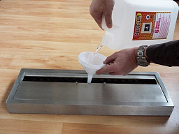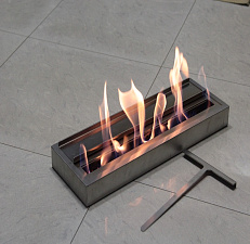 Горелка для биокамина представляет собой небольшой короб с прорезью, через который выходят пары биотоплива. Чтобы обеспечить равномерное распределение огня, используют сетку, которую устанавливают на отверстие в верхней крышке. Биотопливо заправляют непосредственно в бак. Емкость варьирует от 500-700 мл до 3 л, но есть и другие варианты.