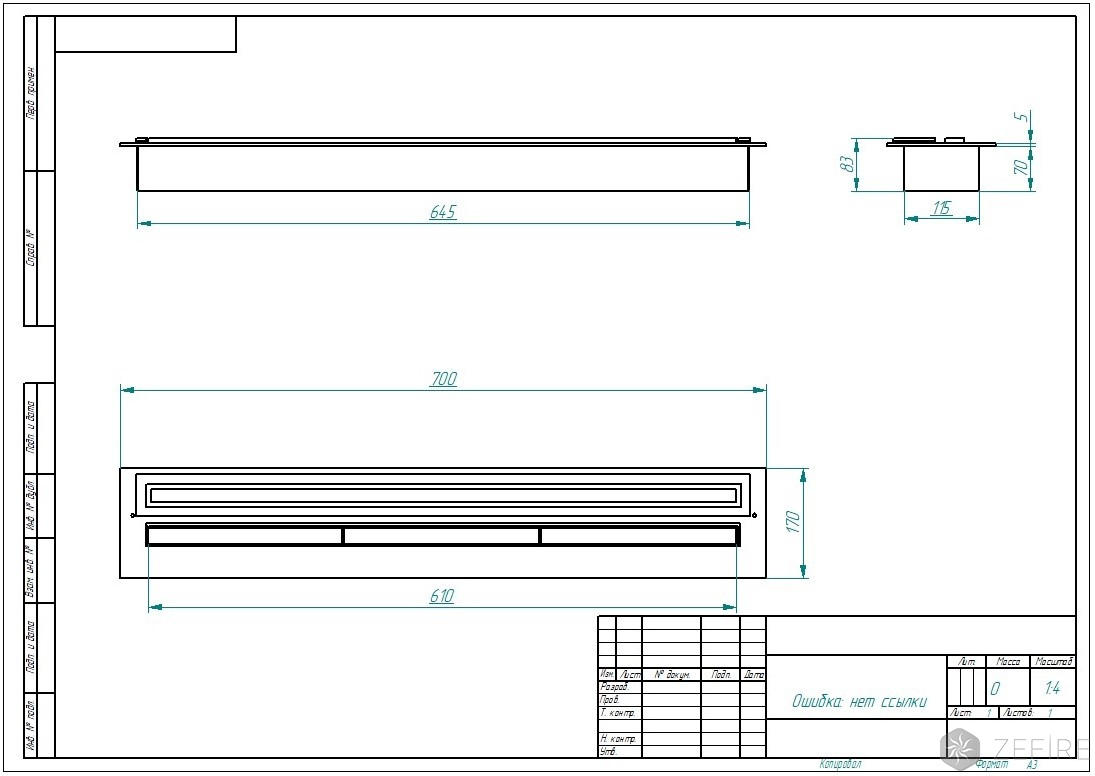 Топливный блок биокамина Прямоугольный контейнер ZeFire 700 PREMIUM