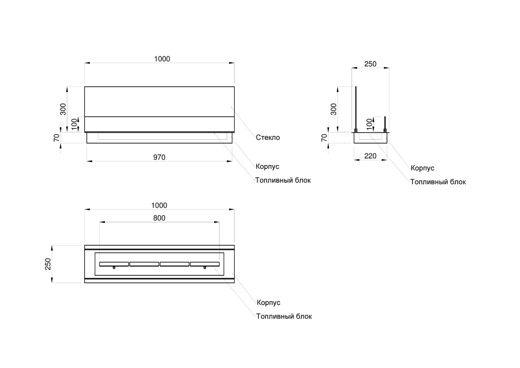 Топливный блок биокамина Proff Fire «Лайн 1000»