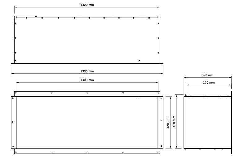 • внутренний размер ШхВхГ (мм): 1300х400х370;
