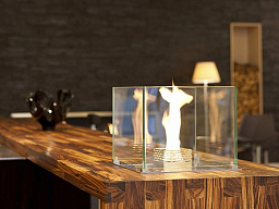 Никакого специального ухода за биокамином не требуется. Все части выполненные из нержавеющей стали протираются салфеткой и средством для ухода за нержавеющими сталями. Стекло протираются обычными средствами для ухода за стеклами.