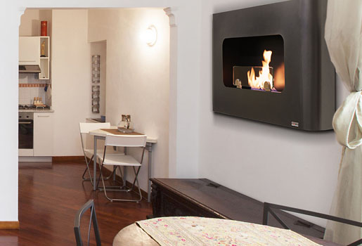 Элегантная настеннаямодель биокамина с закругленными боковыми частями, без острых углов. Итальянский дизайн, мануальное управление.