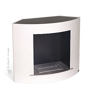 Модель укомплектована фирменным отопительным блоком. Для защиты от открытого пламени и в качестве декора, модель может быть дополнена съемным огнеупорным стеклом. В комплект поставки входит съемный угол, позволяющий повесить биокамин в угол стены.