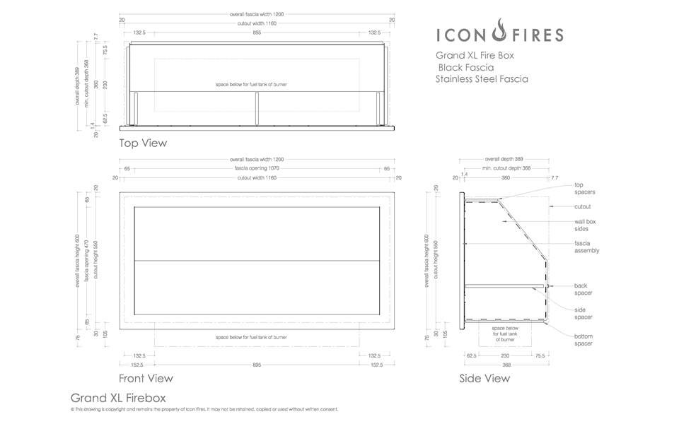 Встраиваемый биокамин GRAND XL FIREBOX с декоративной рамкой из брашированной нержавеющей стали комплектуется горелкой ICON FIRES Commercial LINEAR 914mm.