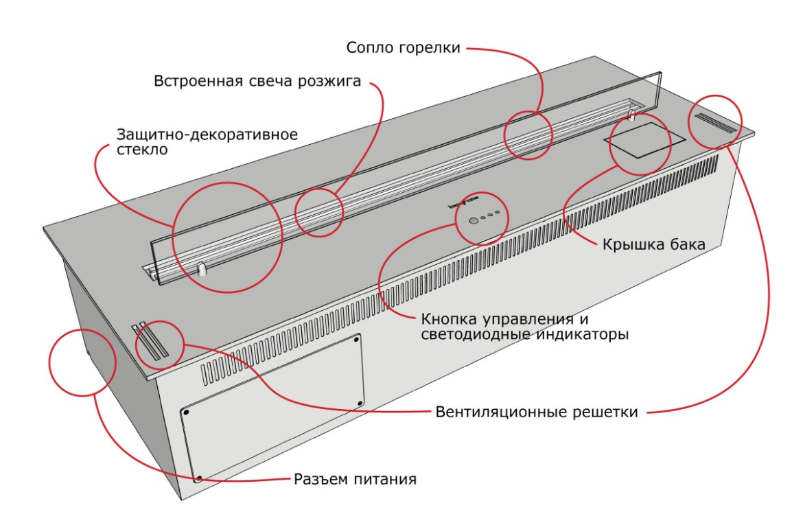 Полностью автоматический биокамин оборудованный кнопочной панелью, имеющий базовый набор функций и датчиков.