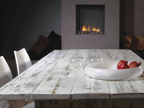 Особенно стоит выделить реализованную в конструкции систему горения Emberbed Burner. В этом случае пламя в топке распределяется элегантными плавными кривыми по всей ширине топки, что максимально похоже на настоящее пламя дровяного камина. Декорирована такая горелка может быть имитацией следующих материалов: