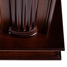 Устанавливается камин на широкие ножки, которые придают основательный вид всей конструкции. Стальная задняя стенка придает современный вид конструкции. Внутренняя часть топки оформлена объемной горелкой, выполненной по технологии Log Burner. В этом случае имитация дров выложена таким образом, чтобы добиться максимального сходства с небольшим костром. Пламя в этом случае сконцентрировано в средней части горелки.