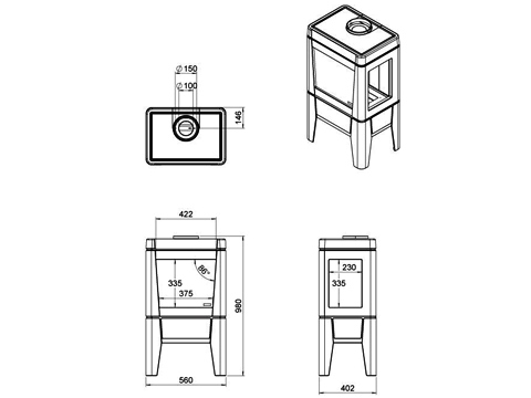 - Габаритные размеры ШxГxВ, (мм): 422x402x980
