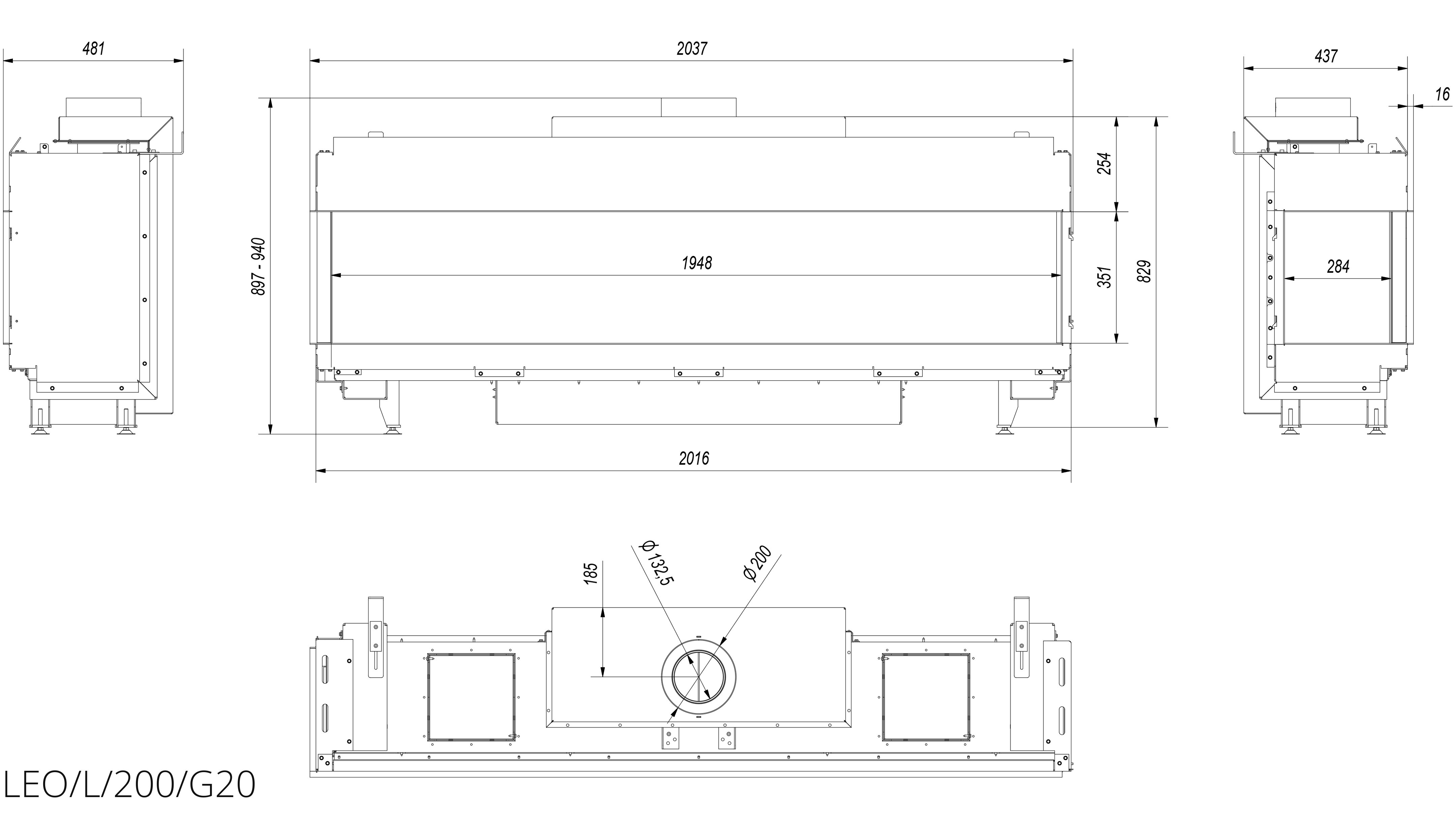 Газовый камин Kratki LEO/L/200/G20 левая магистральный газ