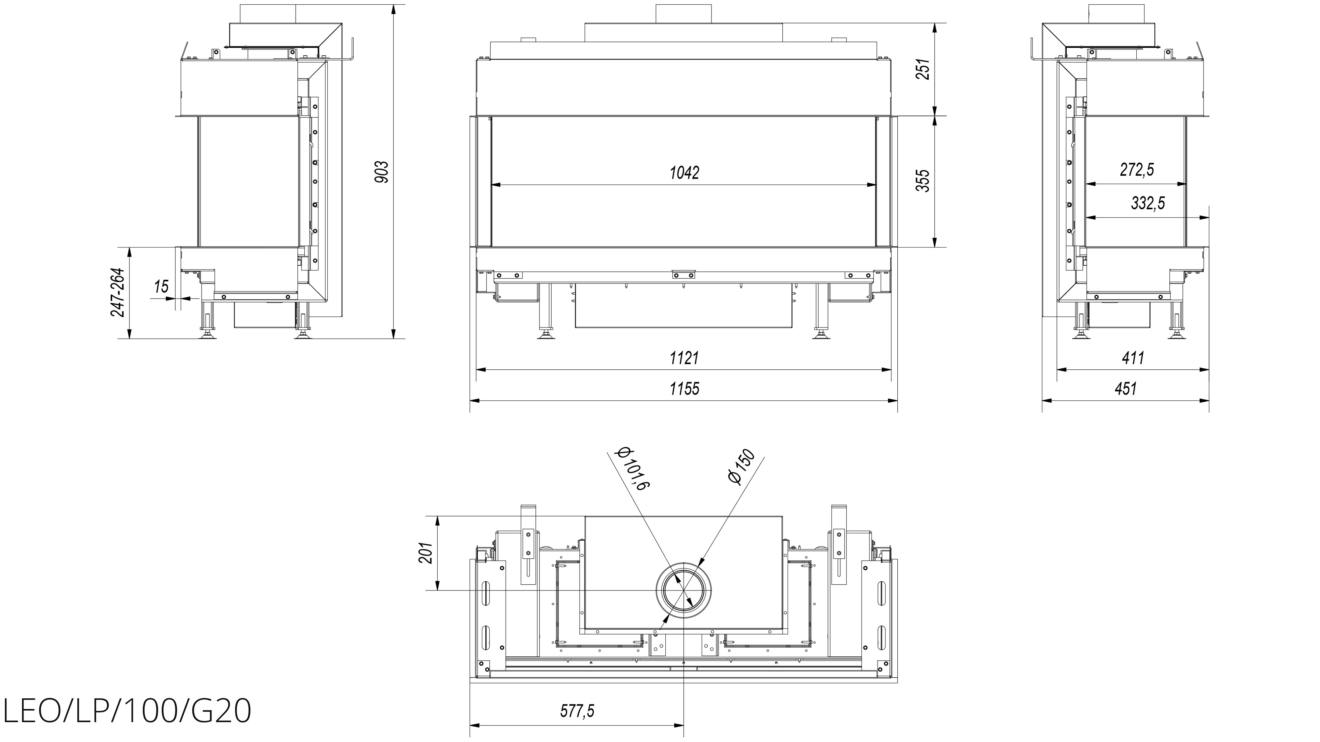 Газовый камин Kratki LEO/LP/100/G20 левая/правая магистральный газ