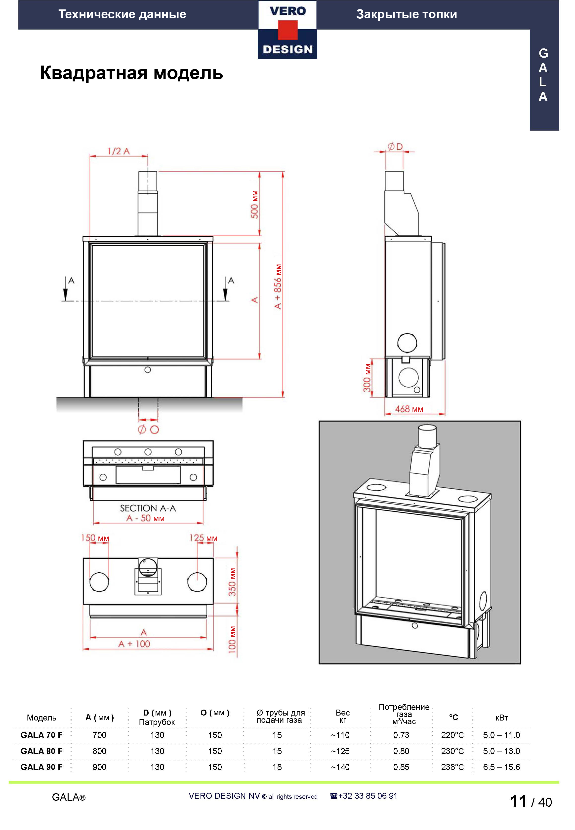 Газовый камин Vero Design Gala GA 90 F
