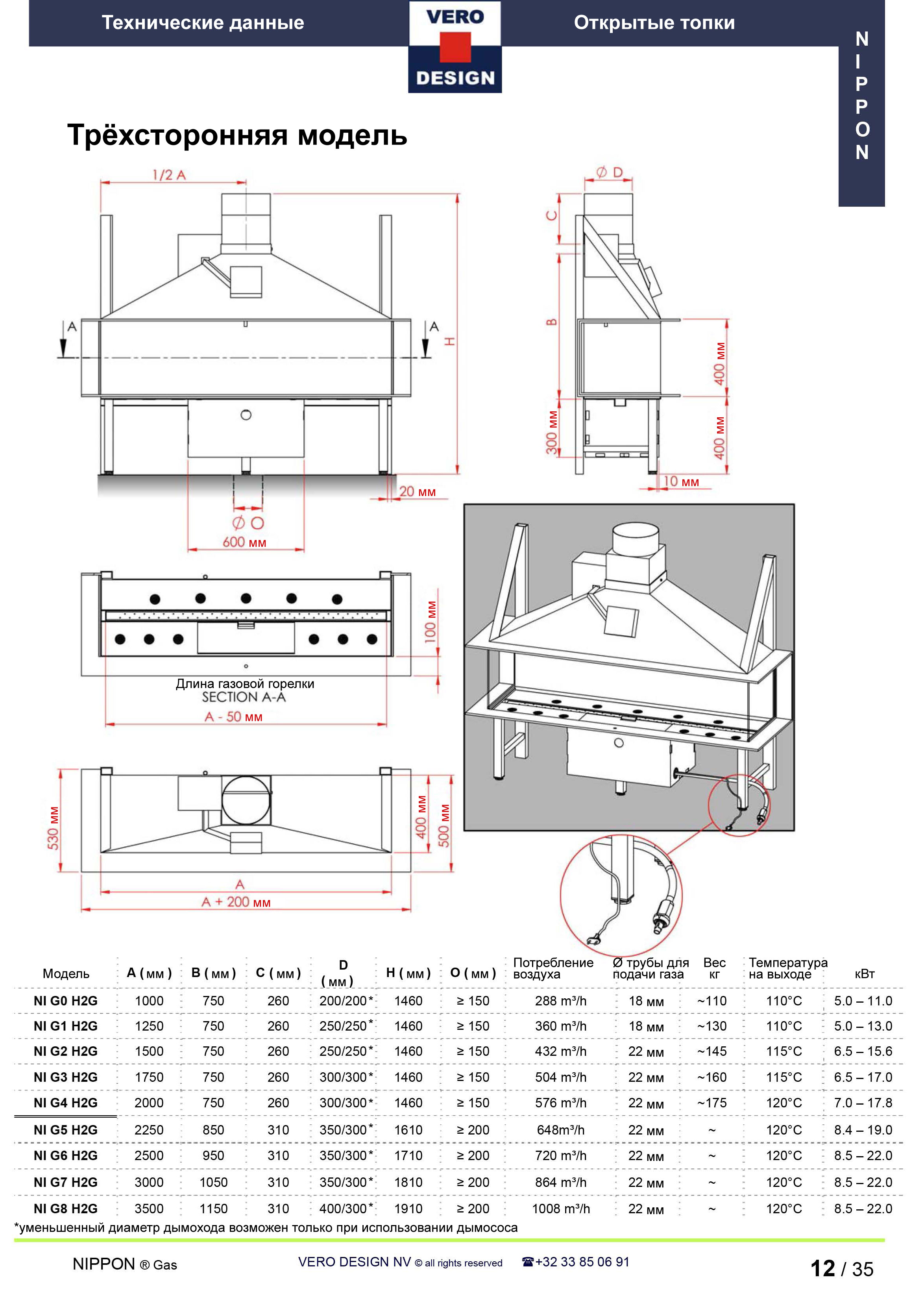 Газовый камин Vero Design Nippon NI G8 H2 G