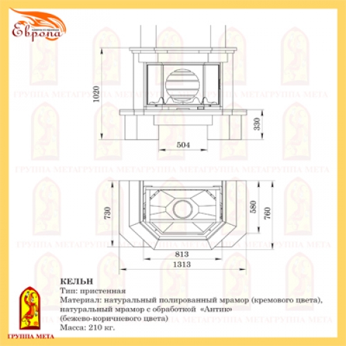 Материал: натуральный полированный мрамор (кремового цвета), натуральный мрамор с обработкой «Антик» (бежево-коричневого цвета)