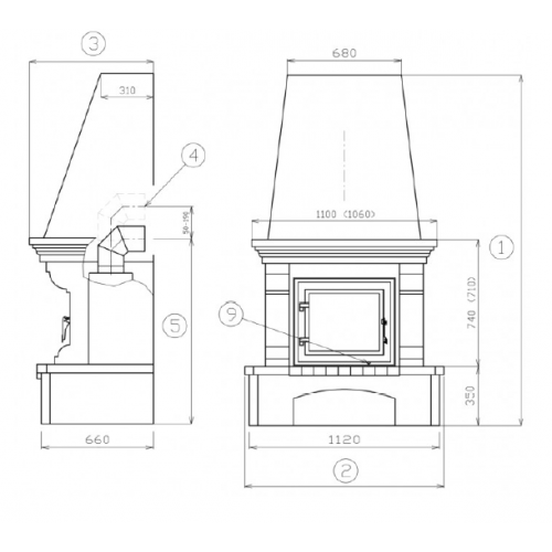 • Расположение камина: - пристенный