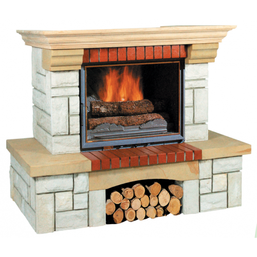 Облицовка для камина Bella Italia Venus представлена в пристенном и угловом исполнении. Наряду с подчеркнутой строгостью и изысканностью, модель привлекательна своей невысокой стоимостью. Сочетание светлых оттенков белого колотого и желтого шлифованного песчаника подчеркнуто насыщенным красным оттенком клинкерного кирпича, вносящего в композицию некоторую изюминку. Наличие деревянного бруса, играющего роль полки, делает акцент на деревенской стилевой направленности облицовки.