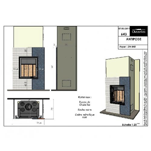 Полувстроенный камин из натурального камня контрастных цветов. Поверхность декорирована гравированным рельефным рисунком. Адаптируемая топка с подъемной стеклянной дверцей. Подходящие топки: DC840 Особенности каминной облицовки: Полувстроенный камин. Игра ассиметрии и контраста. Камень Chazelles декорированы гравированным рельефом. Камень чёрный горной породы гладкий. Технические характеристики каминной облицовки: Общий размер (см) 126 x 3 x 166 Вес 245 Кг