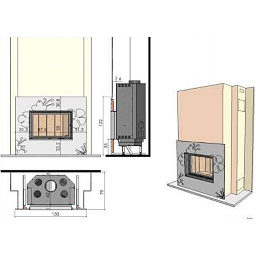 Полувстроенный камин с облицовкой из черного блестящего мрамора. Поверхность облицовки декорирована гравированным необработанным рельефом в виде цветов. Подходящие топки: D1000 D1200 Особенности каминной облицовки: Полувстроенный камин. Мрамор декоративный шлифованный чёрный блестящий. Гравирован необработанным рельефом. На выбор: рельеф необработанный или гладкий. Технические характеристики каминной облицовки: Производитель: Chazelles (Франция) Стиль камина: современный Материал топки: сталь Материал: Мрамор декоративный с блёстками Установка камина: встроенный Вид: фронтальный Топливо: дрова Присоединение дымохода: верхнее Диаметр дымохода, мм: 230 Общий размер (см) : 150 x 2 x 122 Топка : DESIGN D1000. Вес : 210 Кг Возможно исполнение в следующих цветах: