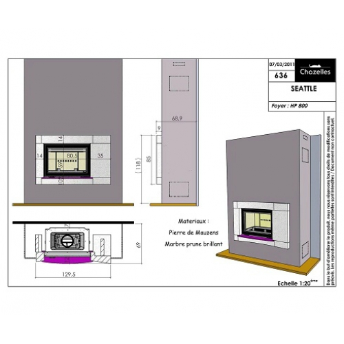 SEATTLE - роскошный встроенный камин, изготовленный из натурального мрамора. Данная модель станет стильным дополнением любого интерьера, придавая ему неповторимость и индивидуальность. Дополнительно к камину SEATTLE можно приобрести встроенную нишу для дров из стали цвета антрацит. Подходящие топки: C801L HP800L Особенности каминной облицовки: Встроенный камин. Камень Mauzens. Мрамор декоративный шлифованный блестящий сливового цвета под топкой. Под заказ: ниша для дров из стали цвета атрацит. Технические характеристики каминной облицовки: Производитель: Chazelles (Франция) Стиль камина: современный Материал топки: сталь Материал: Мрамор. Установка камина: встроенный Вид: фронтальный Топливо: дрова Присоединение дымохода: верхнее Диаметр дымохода, мм: 200 Общий размер (см) : 130 x 9 x 85. Топка : HP 800. Вес : 370 Кг