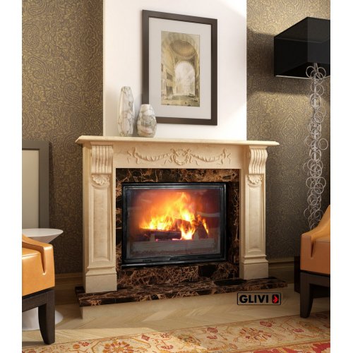 - Камин выполнен из полированного мрамора Crema Marfil, Emperador Dark.