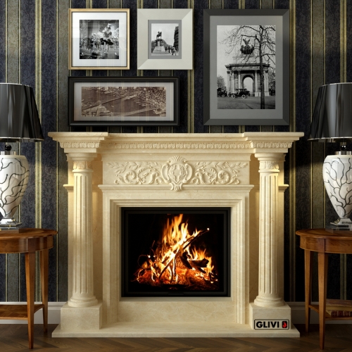 - Камин выполнен из полированного мрамора Crema Marfil.