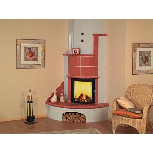 Камн Hark 3/132.0. Угловой камин из изразцов цвета cotto hell.