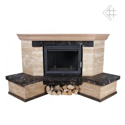 Представлена бюджетная каминная облицовка в угловом исполнении. Каминная облицовка выполнена из натурального полированного мрамора Emperador Venato и состаренного травертина с дубовой балкой. В связи с тенденцией к использованию каждого сантиметра имеющейся площади, владельцы загородных домов ищут способы активно использовать каждый квадрат жилого пространства. Опыт показывает, что угол в доме чаще всего остается не задействованным, поэтому именно в нем целесообразно разместить камин. Таким образом можно убить сразу двух зайцев: установить угловой камин в своем доме, сэкономив площадь жилища, и отлично украсить интерьер помещения, ведь из угла огонь видно практически из любого места в комнате.