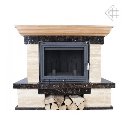 Представлена бюджетная каминная облицовка в пристенном исполнении. Каминная облицовка выполнена из натурального полированного мрамора Emperador Venato, состаренного травентина с дубовой балкой. Мрамор обладает достаточной твердостью, прочностью, стойкостью к износу. Ещё данный материал обладает разнообразной расцветкой, поэтому способен удовлетворить самые различные запросы любителей натурального тепла и ценителей красоты. Уход за мраморным камином достаточно прост. Для этого понадобится обыкновенная мягкая тряпка и чистая вода (не содержащая дополнительных чистящих средств).