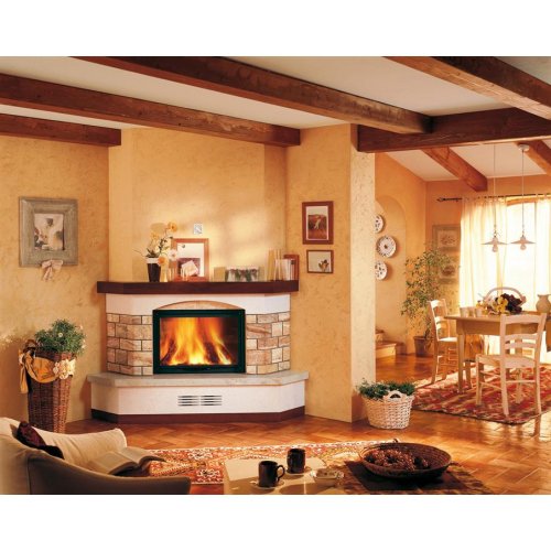 Поэтому для обустройства деревенского дома или дачи применяют современные модели каминов, которые выглядят значительно интереснее, чем печи, а выполняют свои функции очень профессионально. Камин Barga от итальянской компании Piazzetta наполнен натуральными компонентами в отделке, это мрамор бежевого оттенка полированной структуры, а по бокам топки мрамор имеет форму кирпичной кладки, что является оригинальным дизайнерским воплощением и становится необычным дополнением к общему стилю. Коллекция Rustici, представителем которой является камин Barga, наполнена моделями со схожими материалами, где зачастую присутствует сымитированная кирпичная кладка. Камин Barga имеет закрытую форму топки, которая сможет полноценно протопить пространство дома, создать интересное сочетание теплоты огня и хорошего просмотра пламени. Топка закрытого характера способна сделать уникальное яркое сочетание хороших обогревательных способностей модели. В закрытом пространстве горению дров ничто не мешает протекать долго и функционально обогревать дом. При высокой тепловой отдача, обеспеченной КПД не ниже 70%, происходит хорошая экономия дровяного топлива.