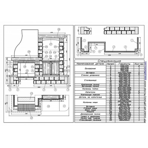 Красный кирпич, ракушечник Du Gard, полка из дуба. Параметры: Высота 229,5 см Ширина 282 см Глубина 75 см