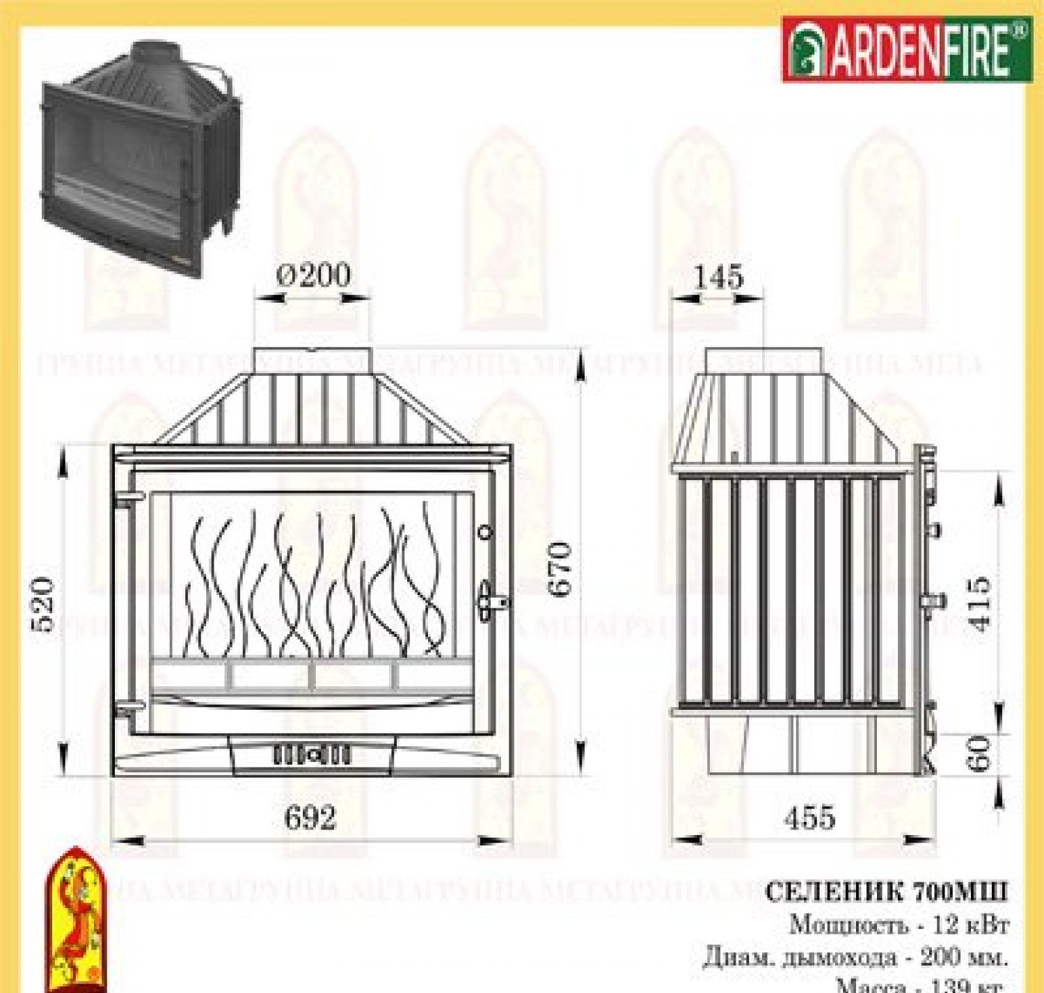 Каминная топка Мета селеник 700мш