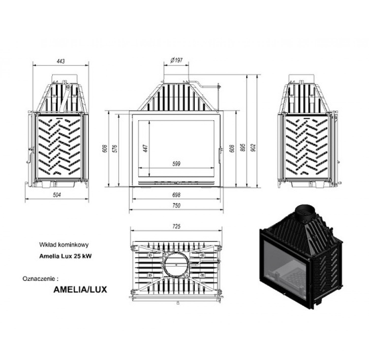 Amelia LUX— топочная камера или топка-вкладыш, предназначенная для отопления дома площадью до250 кв.м. Чугунная топка сширокой дверцей, прямым стеклом истандартным боковым открытием. Топка имеет высокий дымосборник, большую топочную камеру, повсему корпусу расположены ребра— все это позволяет максимально эффективно использовать тепло, выделяемое при горении топлива. в качестве топлива производитель рекомендует использовать сухие дрова или бурый уголь вбрикетах. Особенности оборудования серии Amelia LUX отKRATKI: Чугунная топка непрерывного сгорания; Топка высокой мощности, предназначена для больших помещений; Теплоемкость прибора увеличивают ребра повсему корпусу; Топливо— сухие дрова длиной до500 мм; Стекло— термостойкая стеклокерамика, предел нагрева 800 С; Полная герметичность дверцы; Система «двойного дожига»; Топка имеет съемную ручку надверце; Прозрачность стекла обеспечивает система встроенного обдува; Предусмотрен держатель дров— непозволяет рассыпаться при открытии дверцы; Дно топочной камеры имеет отверстие для золы.