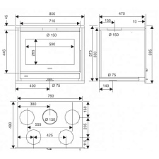 - Подвод конвекционного воздуха: поперечное сечение отверстия не менее - 600 см2, при необходимости удалить съемные задвижки
