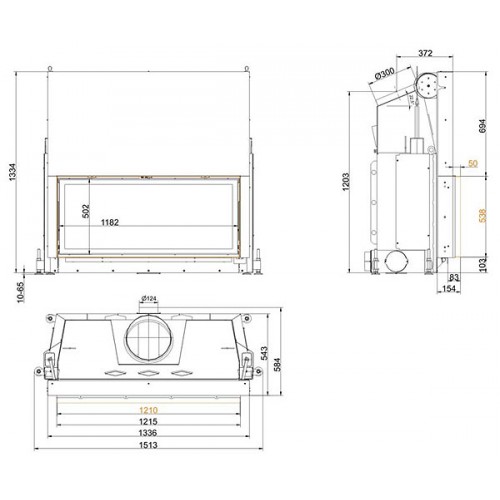 (При закрытии специальных «Тепловых штор» HeatSTOP в топочной камере сгорания сохраняется до 90% излучения. Жар камина экранирует обратно. Ваша прикаминная зона может приблизиться к очагу практически до 50 см.)