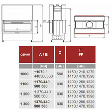 Трёхсторонняя каминная топка. Топочная камера футерована шамотом. Подъёмный механизм двери (система Easy-Lift). Ширина дверки 422/425/422 мм, высота - 409 мм. Возможно подключение воздуха из-вне.