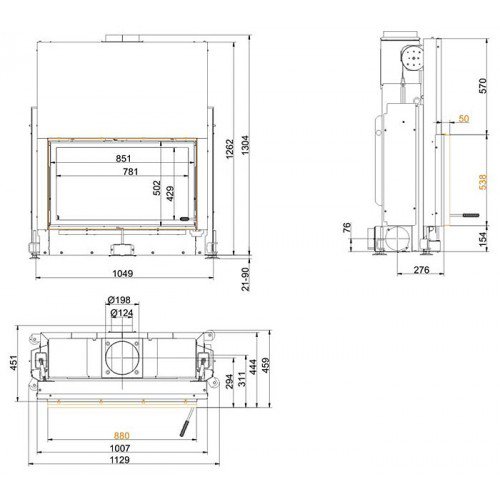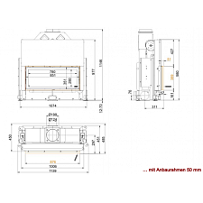 Каминная топка с прямым стеклом. Топочная камера футерована шамотом. Подъёмный механизм двери (система Easy-Lift). Ширина дверки 850 мм. Высота дверки 484 мм. Возможно подключение воздуха из-вне. В комплекте поставляется декоративная или монтажная рамка.