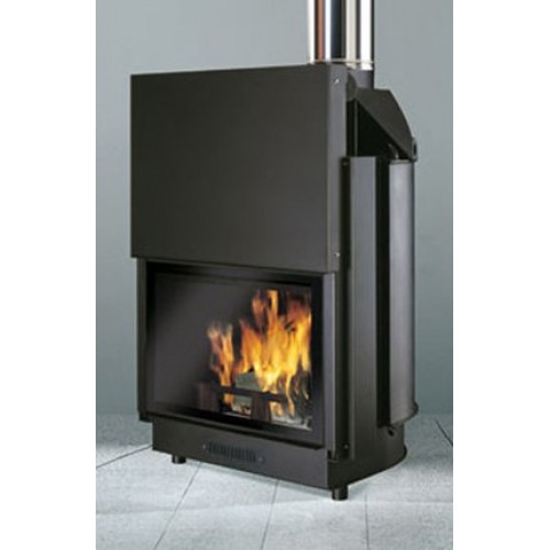 Камин с водяным отоплением из толстой стали, способный производить горячую воду, поступающую в контур системы отопления и на радиаторы, а также производить горячую техническую воду. Дверца с подъемом, плоское стекло. Камин может устанавливаться как пристенный или как фронтальный.